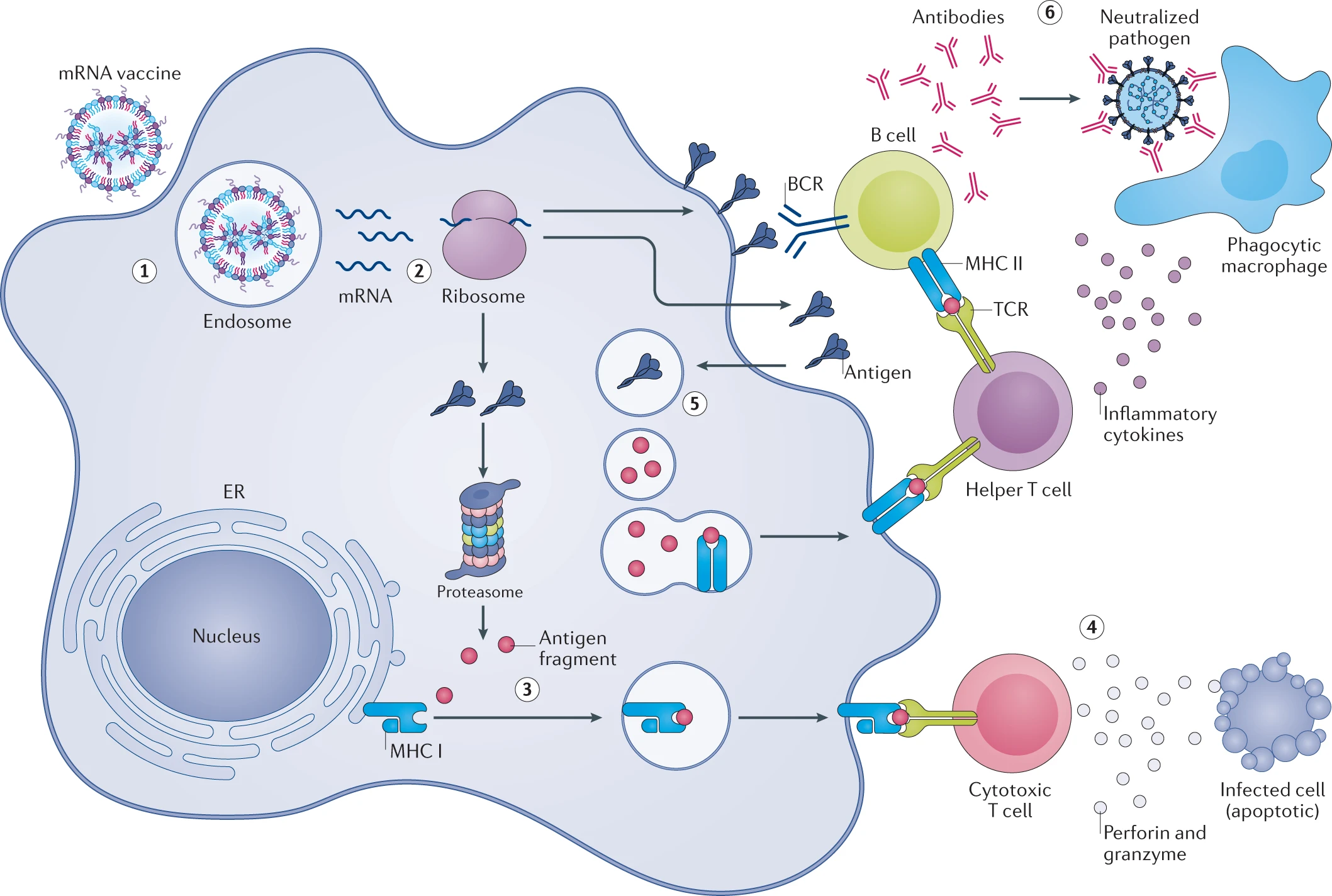 ![Figure 2 - Predominant mRNA vaccine mechanism of action. Image taken from Chaudhary et al. (2021) [c8] with caption: “(1) Injected mRNA vacc](/vaccine.webp)